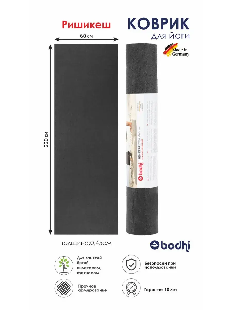 Коврик для йоги нескользящий Ришикеш Бодхи на 100% безопасный. Не содержит AZO красителей и фталатов. Сертифицирован по высшему стандарту Oeko-Tex Standard 100, класс I и OEKO-TEX детский стандарт, (номер теста 38325), что гарантирует уровень безопасности даже при контакте с кожей младенцев. Коврик произведен в Германии из ПВХ HD и отличается особой надежностью и износоустойчивостью к истиранию. Имеет гарантию производителя - 10 лет! Практика на нем позволяет как начинающим, так и опытным йогам сосредоточиться на правильном выравнивании и безопасном выполнении асан в зале и на улице. Те, кто любит заниматься спортом на природе, могут быть уверены, что трава, иголки, мелкие камни не испортят этот коврик. Рекомендации по уходу: Для очистки рекомендуется протирать влажной тканью или кратковременно ополаскивать под душем. Можно стирать в машине при температуре не выше 30°C в режиме ручной стирки без использования моющих средств. Не отжимайте и не помещайте в сушилку, так как это может повредить коврик. Для машинной стирки рекомендуется использовать стиральную машину вместимостью не менее 7 кг. Обратите внимание: Мы оцениваем его устойчивость к скольжению на 8,8 по 10 бальной шкале. Это очень высокий показатель, его не скольжение сопоставимо с ковриками из каучука с принтом. Ришикеш Бодхи это отличный вариант как индивидуального коврика для йоги так и коврика для групповых занятий.