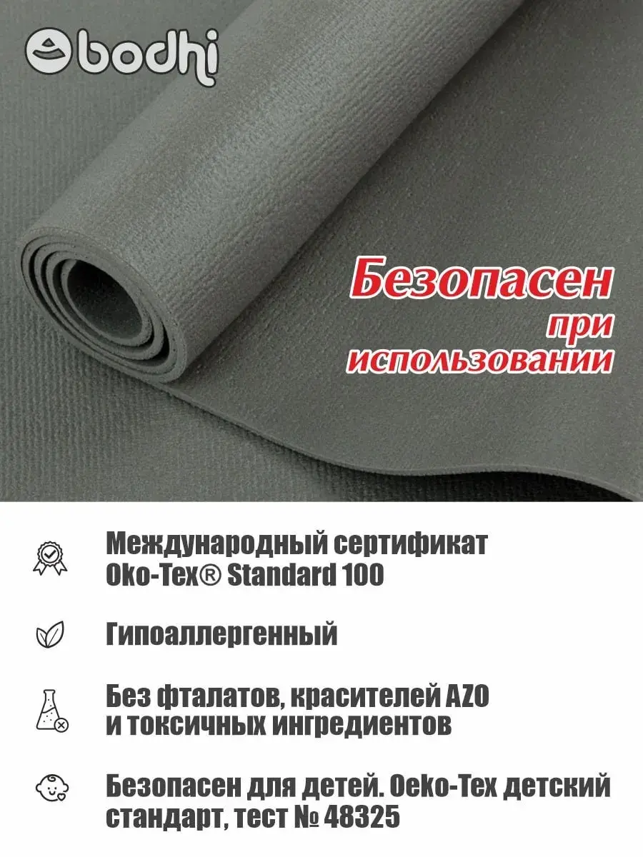Коврик для йоги нескользящий Ришикеш Бодхи на 100% безопасный. Не содержит AZO красителей и фталатов. Сертифицирован по высшему стандарту Oeko-Tex Standard 100, класс I и OEKO-TEX детский стандарт, (номер теста 38325), что гарантирует уровень безопасности даже при контакте с кожей младенцев. Коврик произведен в Германии из ПВХ HD и отличается особой надежностью и износоустойчивостью к истиранию. Имеет гарантию производителя - 10 лет! Практика на нем позволяет как начинающим, так и опытным йогам сосредоточиться на правильном выравнивании и безопасном выполнении асан в зале и на улице. Те, кто любит заниматься спортом на природе, могут быть уверены, что трава, иголки, мелкие камни не испортят этот коврик. Рекомендации по уходу: Для очистки рекомендуется протирать влажной тканью или кратковременно ополаскивать под душем. Можно стирать в машине при температуре не выше 30°C в режиме ручной стирки без использования моющих средств. Не отжимайте и не помещайте в сушилку, так как это может повредить коврик. Для машинной стирки рекомендуется использовать стиральную машину вместимостью не менее 7 кг. Обратите внимание: Мы оцениваем его устойчивость к скольжению на 8,8 по 10 бальной шкале. Это очень высокий показатель, его не скольжение сопоставимо с ковриками из каучука с принтом. Ришикеш Бодхи это отличный вариант как индивидуального коврика для йоги так и коврика для групповых занятий.